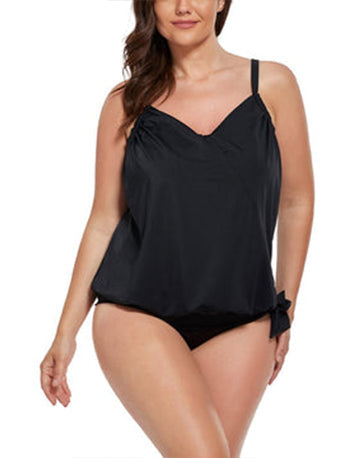 Summervivi - Black Side Tie V-Neck Tankini Top