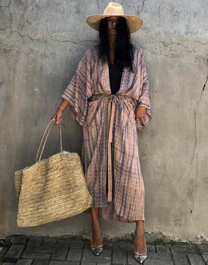 Summervivi - Pink lace-up printed long-sleeved beach blouse
