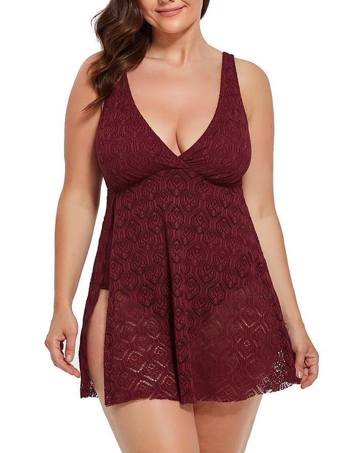 Summervivi Plum Crochet Side Slit V-Neck Swimdress