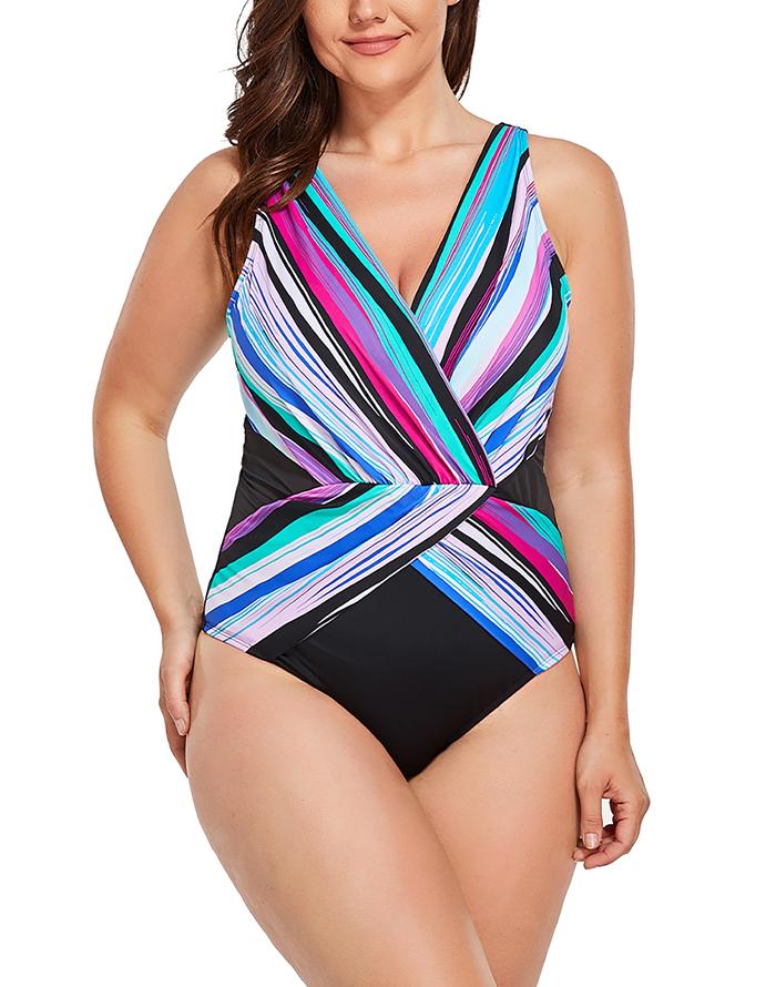 Summervivi - Rainbow Bay Surplice One Piece Swimsuit