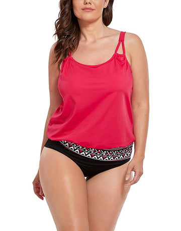Summervivi - Red Loop Strap Blouson Tankini Set